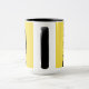Combo coffee/tea mug with solitary crow design against a yellow background.