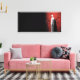 A powerful and isolating piece of dramatic panoramic canvas art. A solitary, white draped figure stands facing a red brick wall, contrasted sharply by a vast expanse of deep black space. This artwork uses bold texture and high contrast to evoke feelings of mystery, isolation, and contemplation. Perfect for adding a sophisticated, moody, and narrative-driven focal point to a minimalist, industrial, or contemporary space, especially over a sofa or long console table.