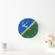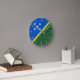 The clock did not take as long to arrive as I thought it might and was extremely well packaged. I didn't do the measurements so I didn't realize it is a little smaller than the average clock but that does not matter (just make sure you check if that's important to you).It is really nifty! It seems very solid and well made not flimsy at all. It has been going well and has kept good time in its few weeks on my wall. Nice product. Gets noticed too! Nicer in real life than the picture but true to the picture