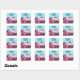 Display the vibrant pinks and purples of downtown Solvang at sunset, in the Santa Ynez wine country of Santa Barbara Country, in California, USA a sticker as a memento of one of America's greatest sites!