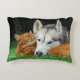 Somali cat and Siberian Husky cute friends huddle Decorative Cushion