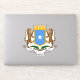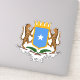 Somalia National Coat Of Arms Patriotic Sticker with the depiction of the Somalia Coat of Arms. Below the coat of arms is the inscription "Somalia" done in beautiful "Aceserif" font and the black colour. Inscription is on the bottom infused with the coat of arms but it can be freely moved or even deleted using "Customise it!" feature. Somalia coat of arms sticker is a fantastic gift and interesting present for any occasion. © 2021 CoutriesOfTheWorld
