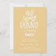 Cute "some Bunny" birthday party invitation in dusty yellow. White typography with bunny ear accent and hand-drawn basketweave style pattern backing.