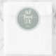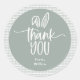 Cute sage green bunny theme, birthday party thank you favour sticker. White typography with bunny ear accent.