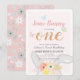 Some Bunny Girl Pink Grey Floral 1st Birthday Invitation
