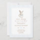 Classic baby shower invitation featuring a vintage bunny illustration with a soft blue ribbon bow. Minimal and timeless with neutral tones, perfect for a boy baby shower, spring celebration, or elegant bunny-themed baby shower party.