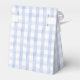 These charming 1st birthday party favor boxes feature a cute bunny holding balloons and a blue gingham background and thank you message under the lid. Designed by Thisisnotme©