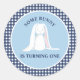 Some Bunny is One blue Gingham Birthday Classic Round Sticker