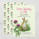 Some bunny is ONE, 1st birthday Invitation with a little bunny and clovers . A happy collage of watercolor paintings for the little one who celebrates her first birthday.