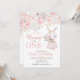 Celebrate your little girl with this "Some Bunny is Turning One" invitation. Featuring a sweet watercolor bunny holding tulips and soft pink floral roses. Perfect for a spring garden party or bunny-themed first birthday. Easily customize with your daughter's party details.