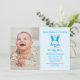 Some bunny is turning 1: Easter birthday invitation customisable for any age. Photo template via Pixabay licensed under CC0 and must be replaced with your own photo