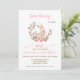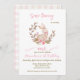 Some Bunny is turning one Birthday girl's party invitation. Lovely typography in pastel pink with golden brown fonts. Adorable watercolor bunny surrounded in pink and brown wildflowers. Back of Birthday Card invitation is in pastel gingham pink and beige watercolor. Easy personalise your special 1st Birthday girl party invitations.