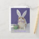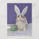 Customisable postcard with Bubba Kitty with bunny ears, faux white fur and a lavender polka dot bow tie. You can change the text.