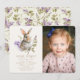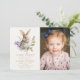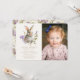 This cute "Some Bunny" girl's 1st birthday photo invitation features a rabbit/bunny with purple lilac flowers in watercolor. The reverse side features a light tea green background with purple lilac floral patterns. Personalise it for your needs. You can find more bunny products at my store.
