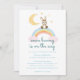 This invitation design is part of the "Some Bunny is on the Way" baby shower collection which features cute designs with watercolor rabbits, easter flowers, rainbow and clouds in gender neutral tones (brown, orange, beige, yellow and blush pink).