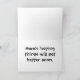 Card depicts a "faux" motorcyclist, head first in a pile of straw with his motorbike at the side. Text inside reads: "Here's hoping things get better soon" . All front and inside text is customisable to your own words.