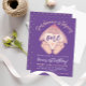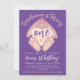 This lovely purple invitation to your child's 1st birthday, adorned with a unique design that showcases a heartwarming cartoonish baby girl bunny in soothing pastel colours is customisable, you can change the texts with your own.