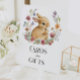 Add this pedestal sign to your baby shower gifts and cards table. This design features a delicate wreath bouquet of hand painted wildflowers surrounding an adorable baby bunny. A lovely combination of modern and rustic fonts complete this sweet design. See the entire collection for more matching items!