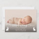 Celebrate your newborn with this elegant and modern baby announcement card, thoughtfully designed by Destei for Easter or spring arrivals. The card features your custom photo as the background, overlaid with the decorative “Somebunny” script font accented with subtle flourishes that resemble delicate branches. Beneath, the text reads “special has arrived” with space to add your baby’s name, birth date and weight, plus a spot for the family name.