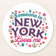 Someone in New York Loves Me Retro Funny Design Round Paper Coaster