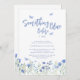 Are you planning a special bridal shower? This charming floral bridal shower invitation is decorated with blue watercolor flowers and butterflies. It says "Something Blue Before I Do" in stylish script typography. Easily customisable. Original Watercolor © Michele Davies.
