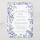 Celebrate love and tradition with our exquisite Chinoiserie Something Blue Before I Do Bridal Shower Invitations! Embrace the charm of a classic theme while adding a contemporary twist to your special day. Our invitations feature intricate Chinoiserie designs in serene shades of blue, evoking a sense of romance and sophistication. With our customisable template, personalising your invitations is a breeze! Simply add your event details to create a tailored masterpiece that reflects your unique style and vision. From the bride's name to the date, time, and location, every detail can be adjusted to perfection. Explore our collection to discover a treasure trove of coordinating items that will enhance your bridal shower experience. From matching enclosure cards to charming decorations, we have everything you need to create a cohesive and unforgettable celebration.