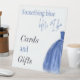 Elegant Something Blue themed Bridal Shower Favour sign with Blue Dress and Calligraphy Script text quote.
