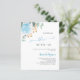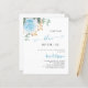 A chic white background. Decorated with a dusty blue floral, rose flower and green watercolored eucalyptus leaves, sprigs, greenery and a faux gold sprig. Personalise and add the name of the bride to be and details. Text: Something blue before I do.