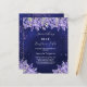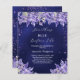 A navy blue background, the blue colour is uneven. Decorated with lavender borders and coloured faux glitter dust. Personalise and add a name and party details. Text: Something blue befor I do.