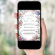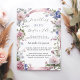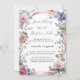 An elegant white background, decorated witth pink and blue wildflowers and a pink ribbon. Personalise and add a name and party details.