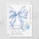"Something Blue Before I Do" theme bridal shower invitation with a blue colour bow and a modern minimal design
