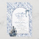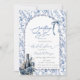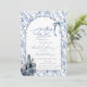 This elegant invitation features a charming blue bow, a wine bottle, and blue roses perfect for a "something blue" bridal shower. These bridal shower invitations are easily customised for your event by simply adding your details. The intricate floral motifs and soft blue hues whisper of something old, something new, and of course, something blue.