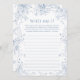 Make your event unforgettable with this Personalised Something Blue Bridal Shower Guess Who Game Card, perfect for something blue bridal shower ideas. Designed to match a charming something blue bridal shower theme, this game card adds fun and elegance to any blue bridal shower ideas. Whether you're hosting a classic something blue bridal shower or a modern blue bridal shower, this game fits beautifully. Celebrate the bride-to-be with a touch of something blue, honouring the something blue before I do tradition in your something blue before I do shower theme.