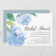 Chic bridal shower invitation features watercolor peony flower illustrations in soft pastel blue, accented with lush green leaves. Personalise with your bridal shower details aligned at the right. Cards reverse to solid pale blue.