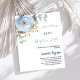 A chic white background. Decorated with a dusty blue floral, rose flower and green watercolored eucalyptus leaves, sprigs, greenery and a faux gold sprig. Personalise and add the name of the bride to be and details. Text: Something blue before I do.