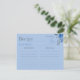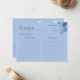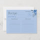 Elegant Calligraphy Script Something Blue Bridal Shower Themed Recipe Card with watercolor flowers. On the other side there are a glasses of champagne with a bouquet.
