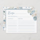 This beautiful Something Blue floral bridal shower recipe card is perfect for capturing all of your special recipes. Featuring a dusty blue and white colour scheme and gorgeous floral accents, this card is sure to add a special touch to your bridal shower. Share your favourite recipes with your loved ones and keep a treasured memory of your special day.