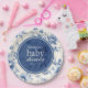 Something Blue Floral French Toile Baby Shower Paper Plate