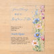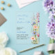 A clear, transparent background. Decorated with a wildflowers in pink, blue, yellow. Personalise and add the name of the bride to be and party details. Text: Something blue Before I do