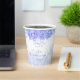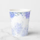 Something blue before i do bridal shower blue hydrangea botanical floral personalised monogram printed paper cups template, watercolor dusty blue flowers botanical paper cups table decor for garden themed bridal shower.