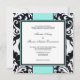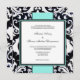 Black & White Damask Background with Blue Accent Wedding Invitations