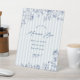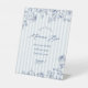Invite your guests to make their own mimosas at your "something blue" bridal shower with our acrylic pedestal sign featuring classic chambray stripes and navy floral line art.