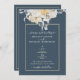 SOMETHING BLUE! Traditional floral wedding invitation features an elegant blue and white floral design on a muted background with gold trim