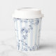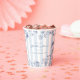 Decorate the table of your "something blue" bridal shower with our custom paper cups featuring classic chambray stripes and navy floral line art.