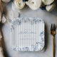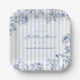 Decorate the table of your "something blue" bridal shower with our custom paper plates featuring classic chambray stripes and navy floral line art.