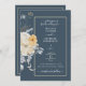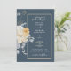 SOMETHING BLUE! Traditional floral wedding invitation features an elegant blue and white floral design on a muted background with gold trim