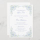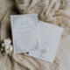 The invitation is adorned with stunning borders of hand-painted watercolor flowers in soft hues of blue, green, and light pink. These delicate blooms gracefully encircle the invitation, creating an inviting and serene atmosphere that captures the beauty of a blooming garden.