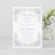 The invitation is adorned with stunning borders of hand-painted watercolor flowers in soft hues of blue, green, and light pink. These delicate blooms gracefully encircle the invitation, creating an inviting and serene atmosphere that captures the beauty of a blooming garden.