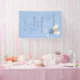Elegant Calligraphy Script Something Blue Bridal Shower Themed Welcome Sign Banner with watercolor flowers. On the other side there are a glasses of champagne with a bouquet.