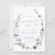 Elegant dusty blue wildflower wreath "something blue before I do" bridal shower invitation.